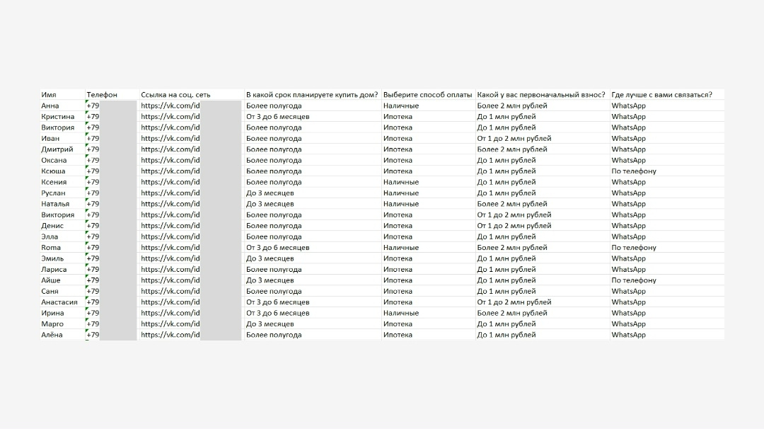 При необходимости форма адаптируется под конкретные цели клиента — можно добавить дополнительные поля, которые помогут риелторам точнее понимать запросы и мотивацию аудитории.