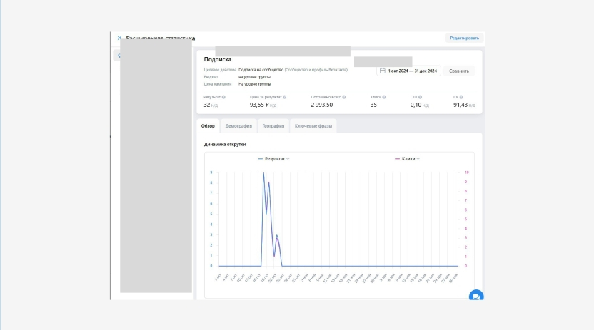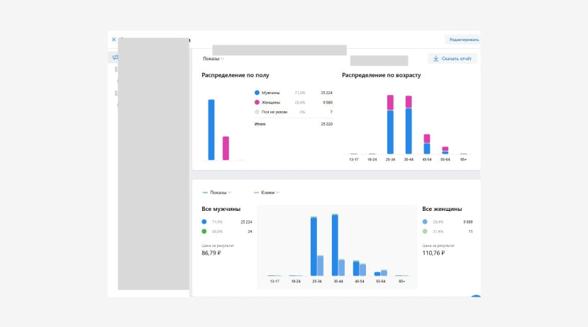 Ниже вы можете увидеть статистику из рекламного кабинета.