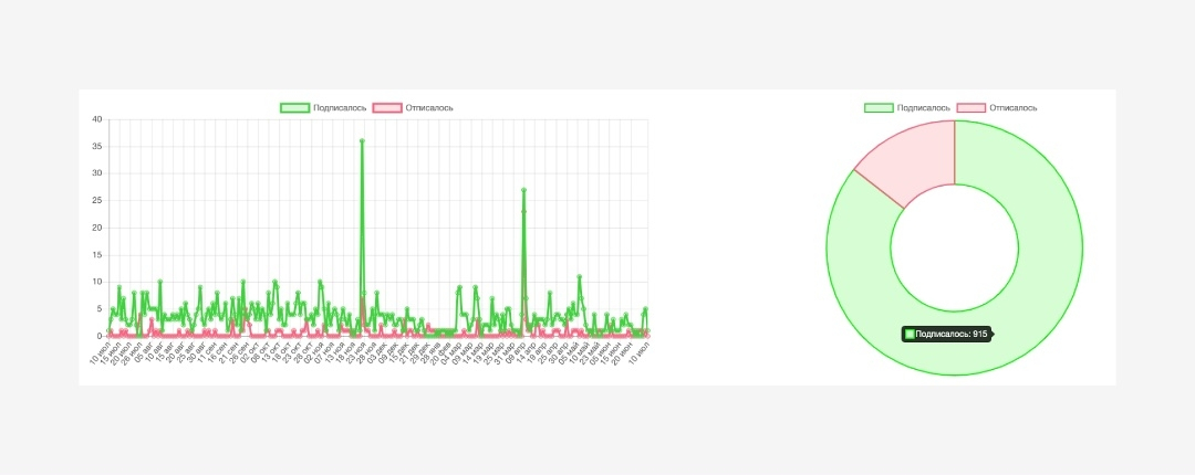 За все время получили 32 подписчика в сообщество ВК и 52 подписчика в телеграмм-канал.