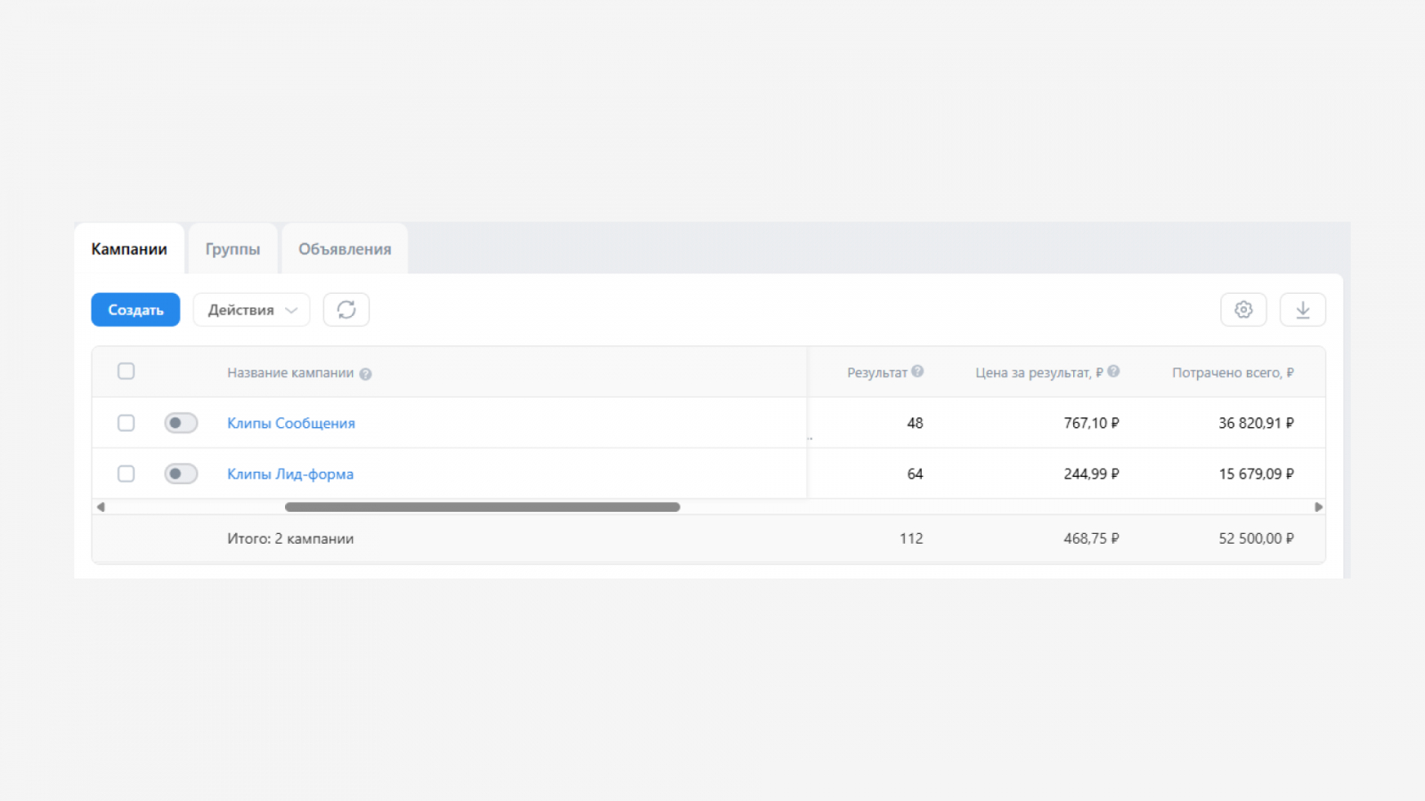 В результате мы увидели, какие сегменты откликаются лучше всего и какие креативы к ним подходят. Это позволило отключить всё, что не даёт результата, и перераспределить бюджет в пользу эффективных направлений.