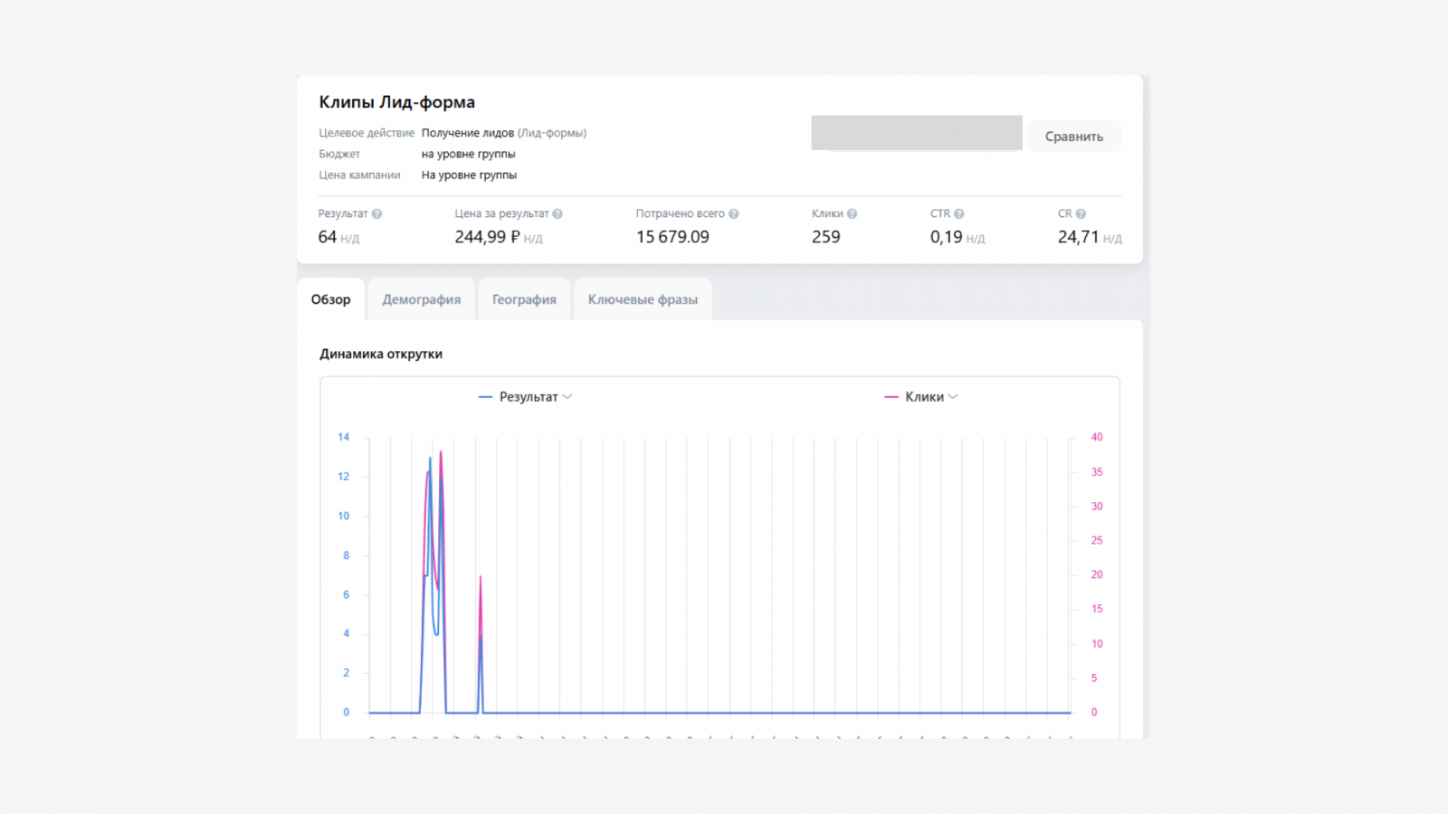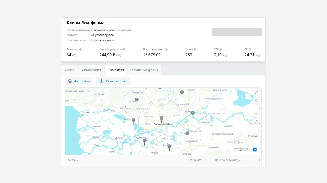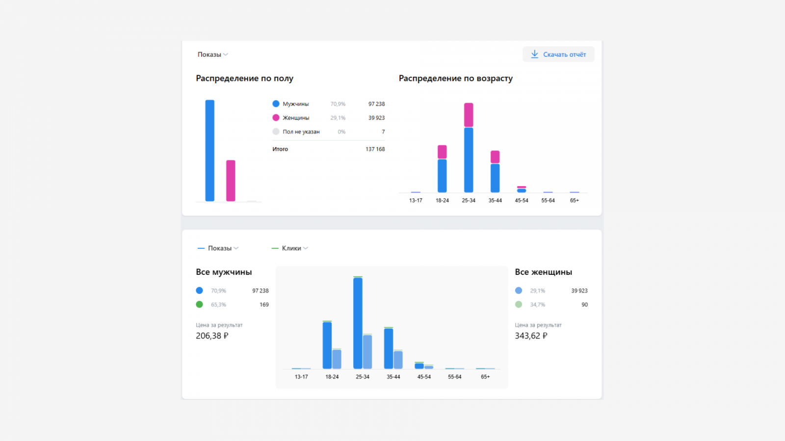 Ниже вы можете увидеть статистику из рекламного кабинета.