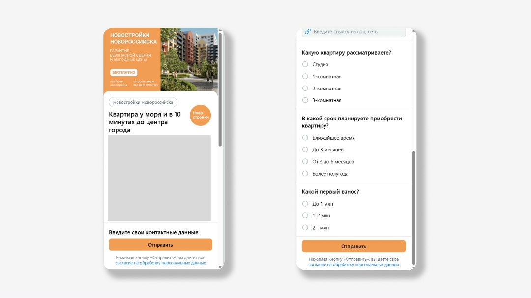 Следующим важным шагом стало выбор эффективного инструмента для сбора заявок. Мы остановились на лид-формах, так как это наиболее удобный формат для пользователя: оставлять заявку можно было прямо в социальной сети без перехода на сайт. Такой формат значительно повышает конверсию, упрощая процесс взаимодействия.