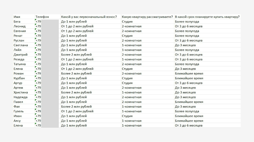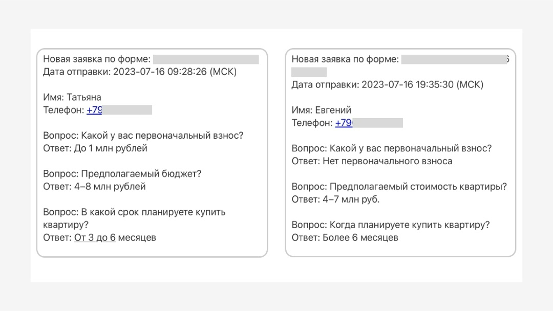 Такой формат позволяет обеспечить оперативную обработку заявок: можно быстро связаться с заинтересованным человеком, уточнить детали запроса и предложить наиболее подходящие варианты недвижимости.