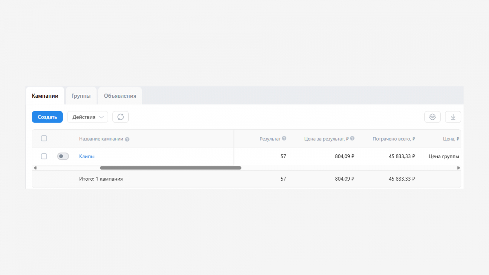 Этот клип оказался наиболее привлекательным для аудитории и принёс 41 заявку со средней стоимостью около 666 руб. за заявку.