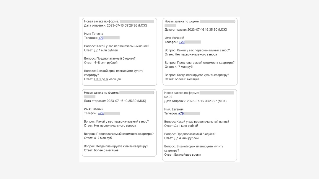 Тут вы можете увидеть какие бывают заявки с лид-форм.