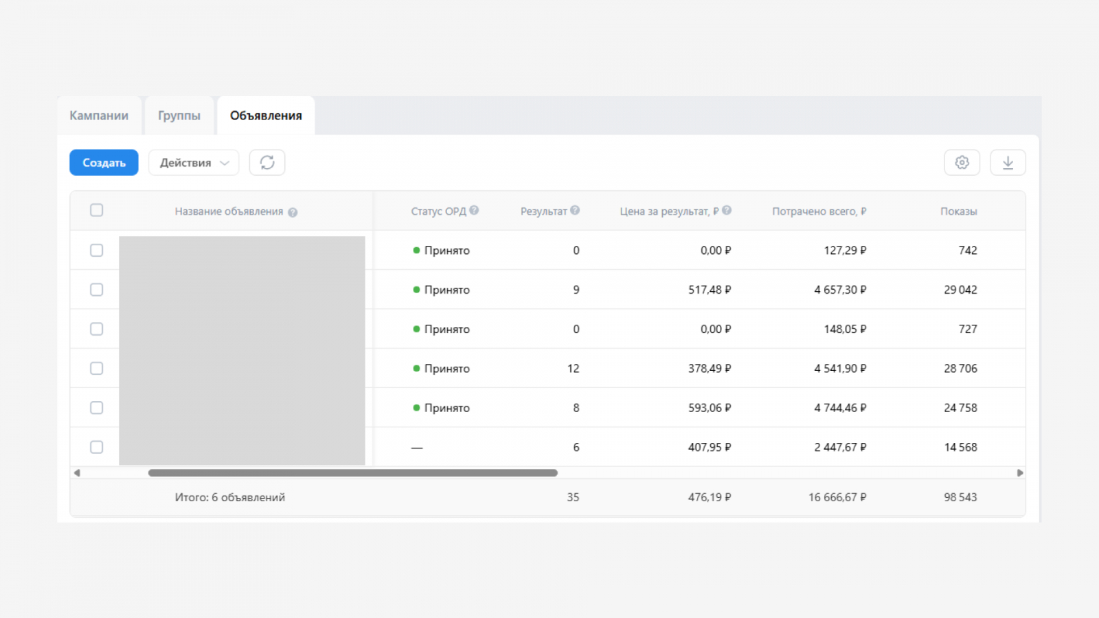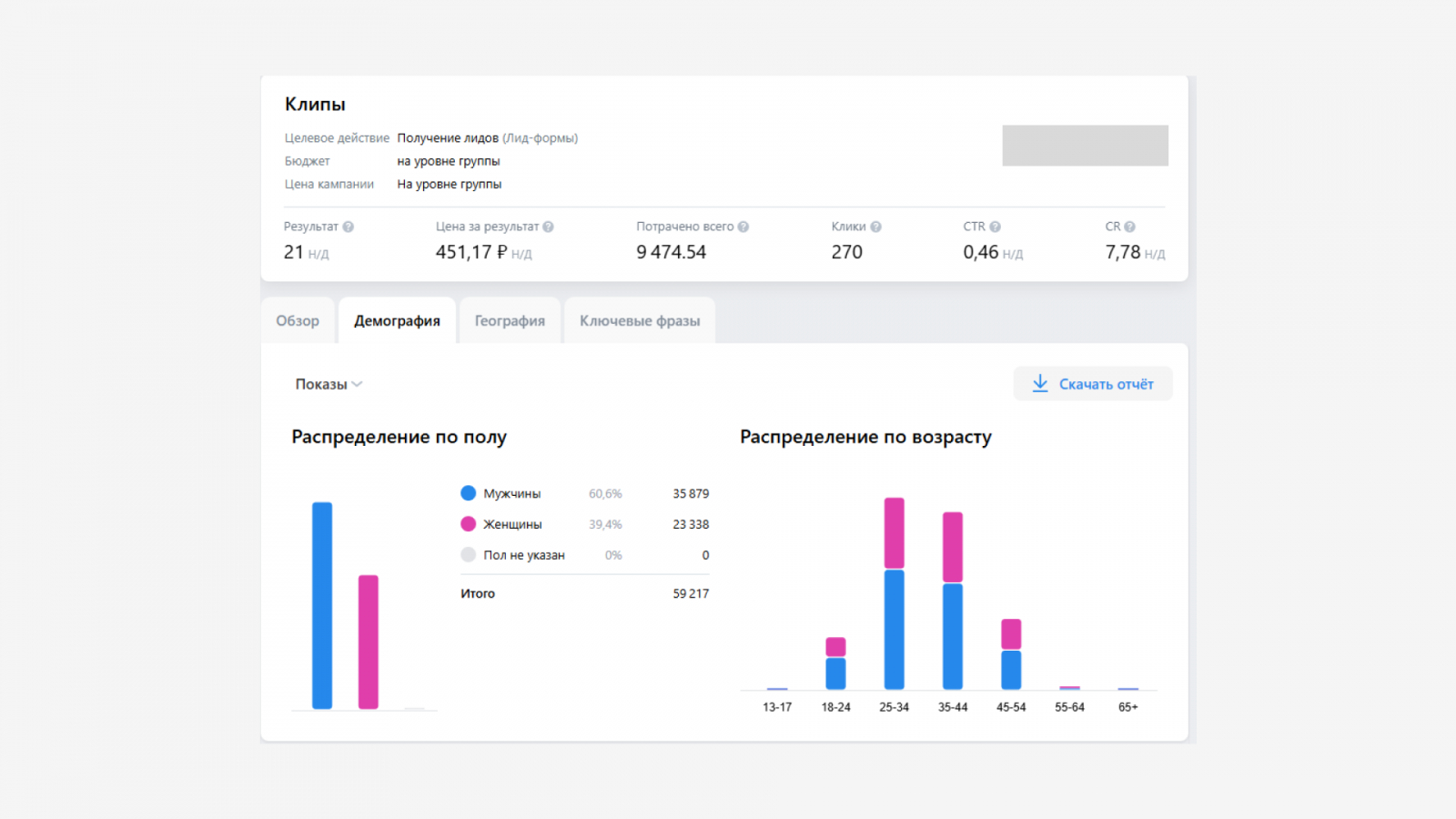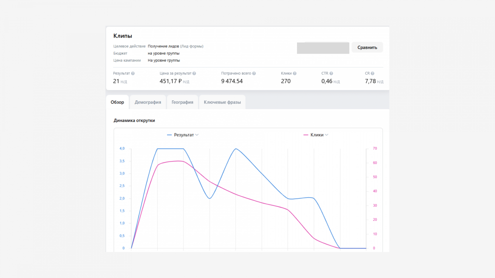 Ниже вы можете увидеть статистику из рекламного кабинета.