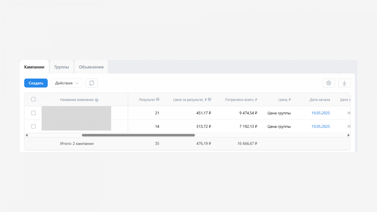 Ниже вы можете увидеть скриншоты из рекламного кабинета.