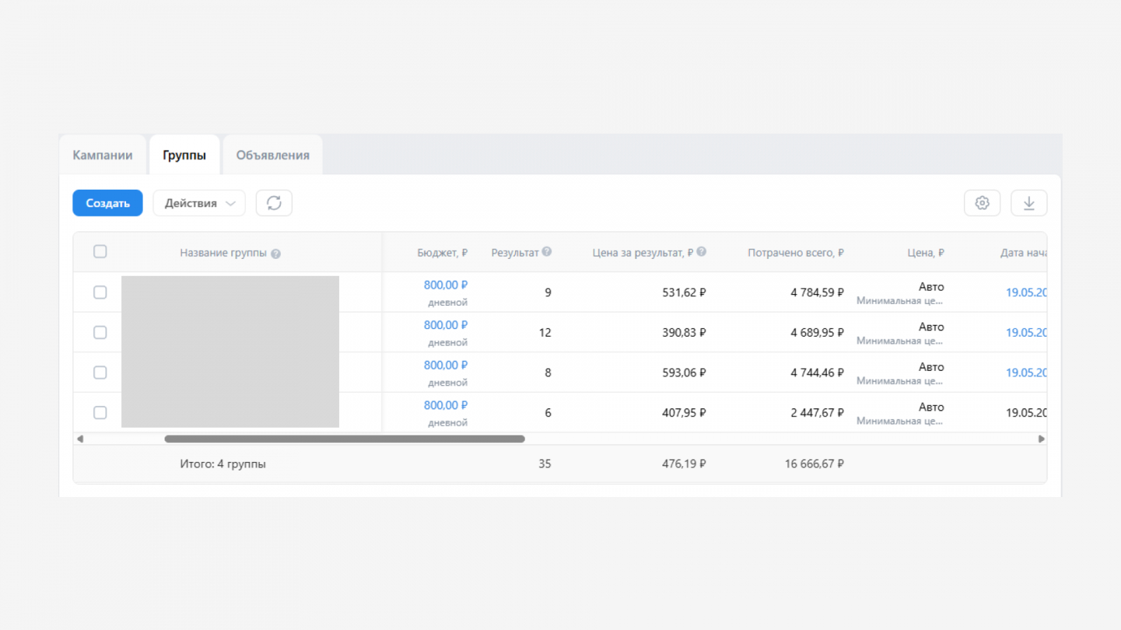 Мы регулярно анализировали статистику по каждой группе объявлений и отключали менее эффективные креативы. Это позволило сфокусировать бюджет на тех вариантах, которые давали максимальный отклик по минимальной цене.