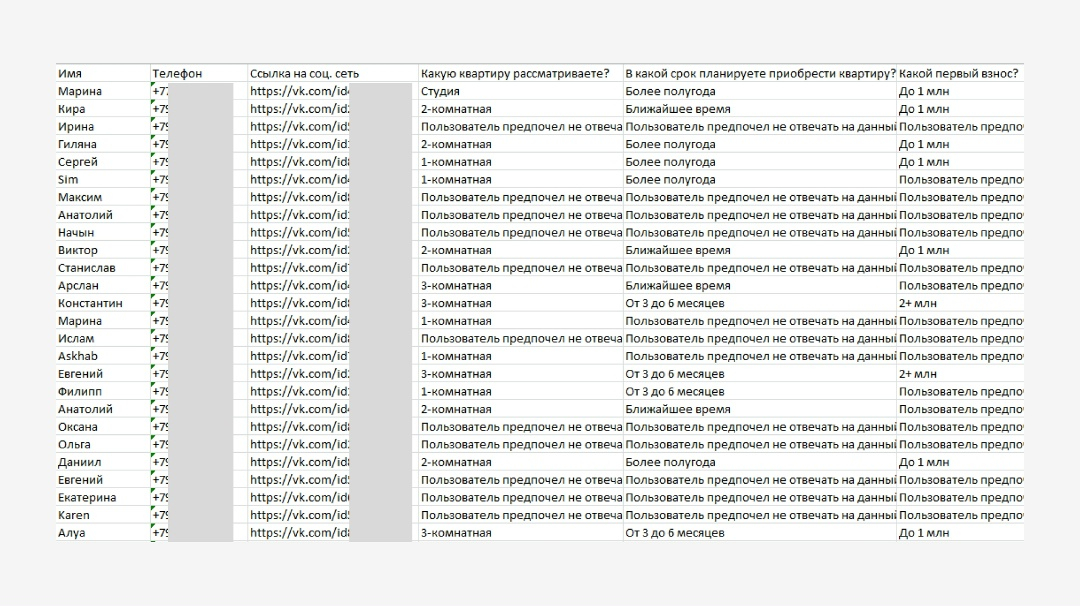 Все заявки обрабатывал сам риэлтор, что дало живую обратную связь по качеству лидов и позволило оперативно корректировать рекламные связки.