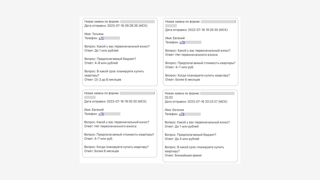 Ниже вы можете посмотреть, как выглядят заявки, поступающих через лид-форму: