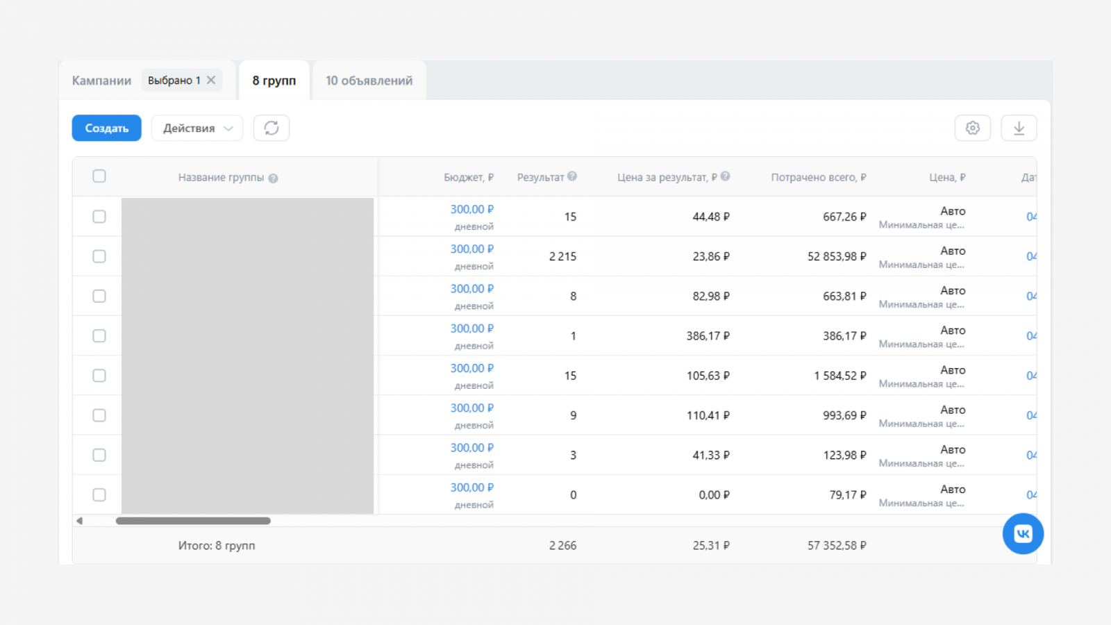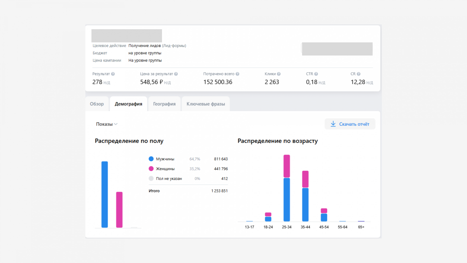 Ниже представлена статистика из рекламного кабинета: