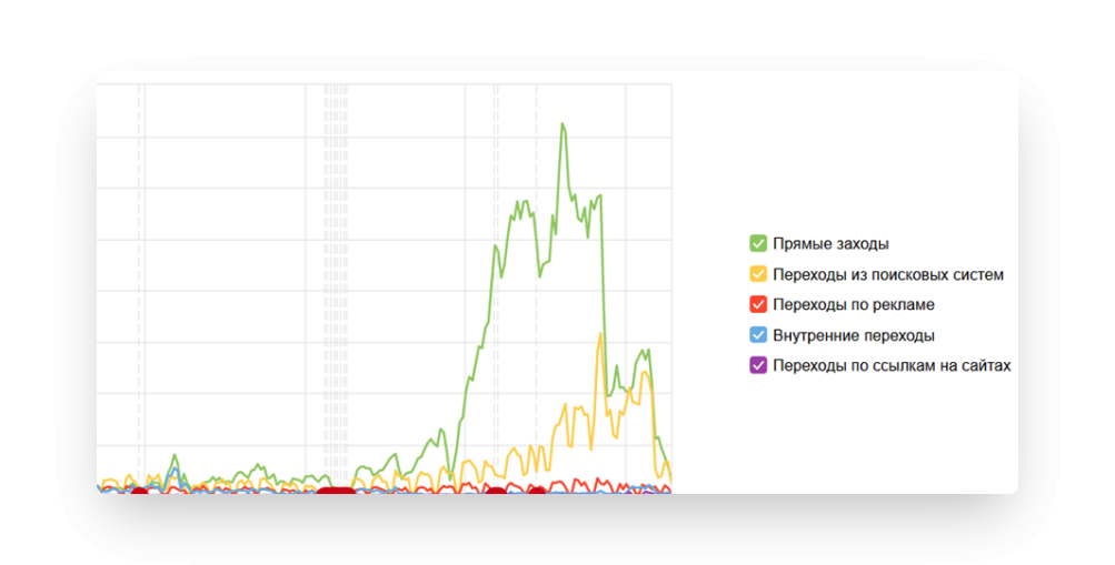Также обращайте внимание на визиты из социальных сетей. Накрутка переходов может идти не только из поиска, но и из соцсетей: VK, Facebook* и Instagram*, Одноклассники, Twitter и т. д.
