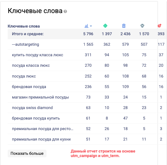 Портрет клиента: интернет-магазин концептуальной посуды, столовых приборов и кухонной утвари. Использует Яндекс Директ для привлечения «теплого» и «горячего» трафика. Ключевая цель — покупка (оформление заказа).
