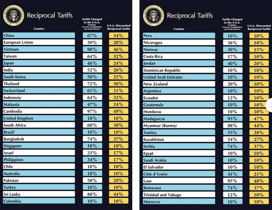 Против Камбоджи зачем-то ввели тариф 49%, против Лесото (беднейшей африканской страны) — 50%. Китаю изначально досталось 34%, но сейчас речь идет уже о 125% (после ответного повышения пошлин от КНР на американские товары).