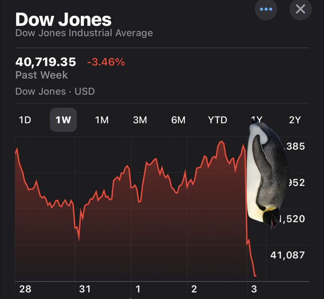 Ниже на графике (рис.4) представлено падение индекса Доу-Джонса — как видим, и здесь не обошлось без пингвинов.