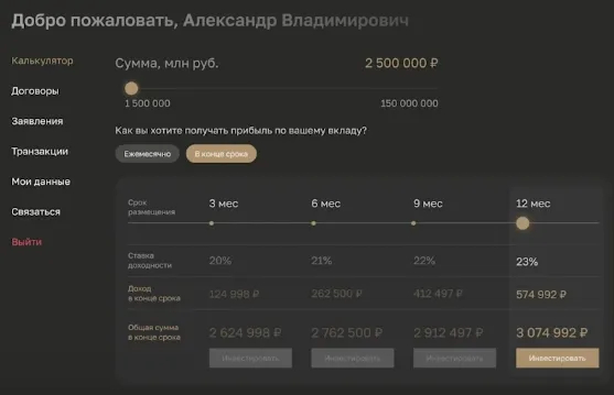 Также через «Личный кабинет инвестора» можно подать заявку на перезаключение договора, досрочный вывод средств или обновление персональных данных (они максимально защищены: все транзакции обрабатываются на серверах компании «МигКредит»).