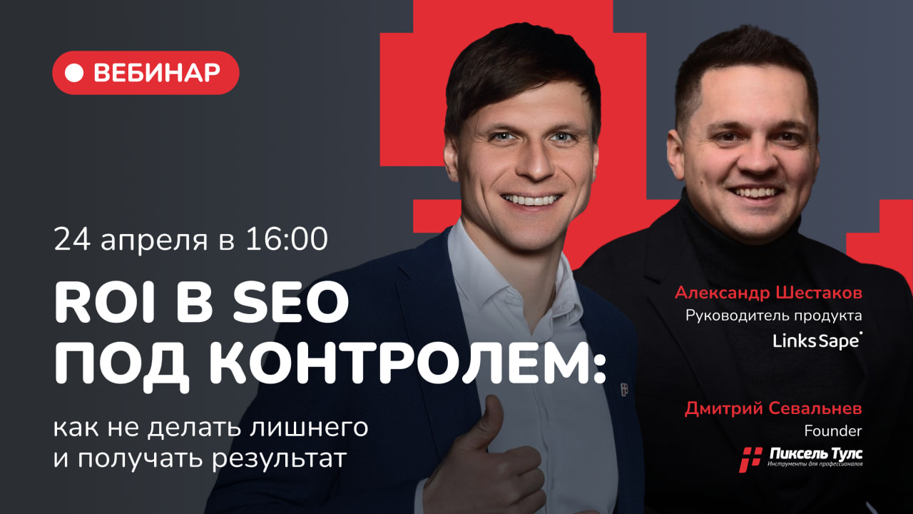 24 апреля в 16:00 на бесплатном вебинаре эксперты расскажут, как превратить SEO в точный инструмент роста бизнеса: от оценки эффективности поисковых стратегий до автоматизации линкбилдинга с помощью ИИ и повышения ROI (коэффициента рентабельности инвестиций). Узнаете, как все устроено на практике: с примерами, понятными объяснениями и рабочими инструментами.