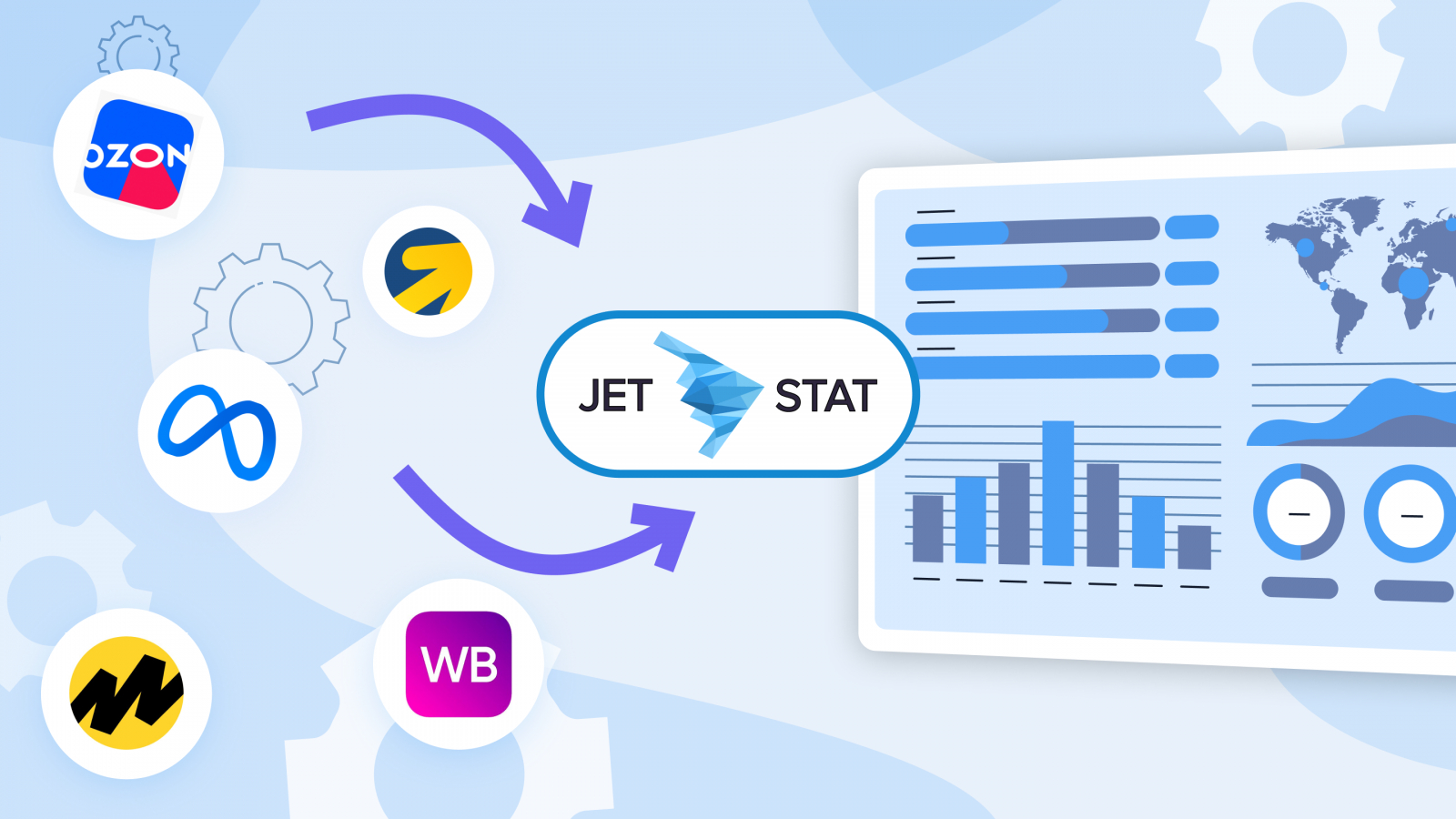 JetStat JetStat выстраивает единый контур аналитики: от маркетинга до продаж. Внутри одной платформы можно увидеть, как реклама влияет на выкуп, как SKU влияет на ROI, где теряются маржинальные клиенты и что реально приносит прибыль.