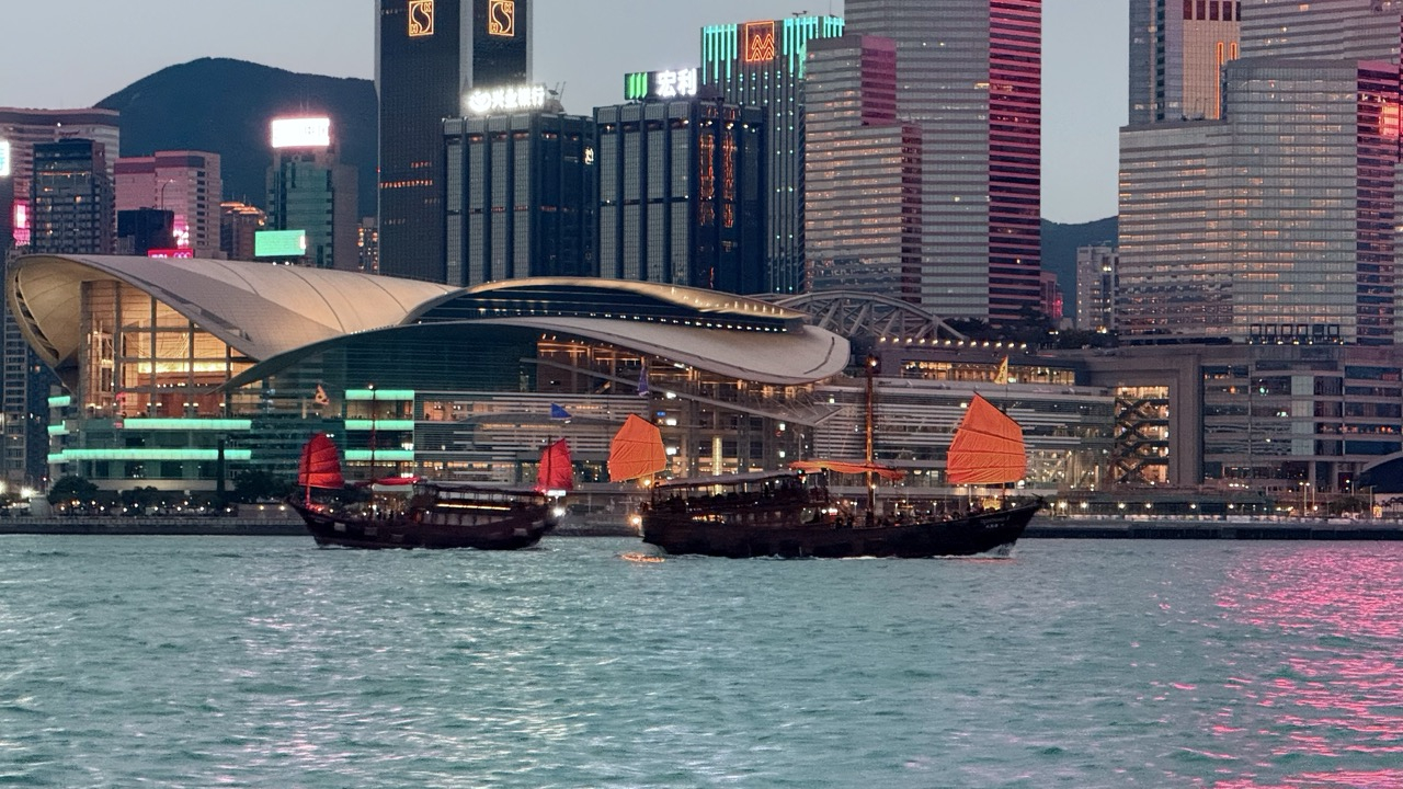 Выйдя на станции Hong Kong в пятницу в 14:00, я пошла пешком до жилья. Улицы чистые, оживленные, с небоскребами, двухэтажными трамвайчиками и вывесками на английском и китайском с эстетичными шрифтами. Даже официальный логотип Гонконга — минималистичный цветок баухинии — сразу задает тон: здесь дизайн в каждой детали. У Central Ferry Pier голубая вода и приятный запах моря.