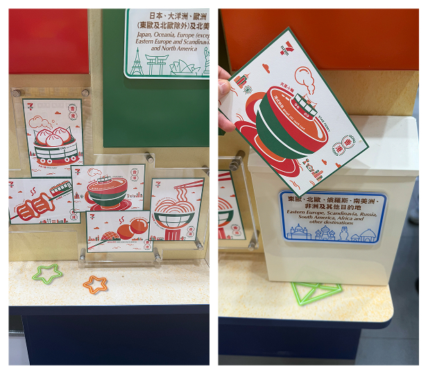В 7/11 на пике можно отправить открытку с дизайном достопримечательностей в стиле еды: кораблик в чашке, димсамы на крыше, трамвай на шпажке — маркетологи 7/11 знают толк в креативе.