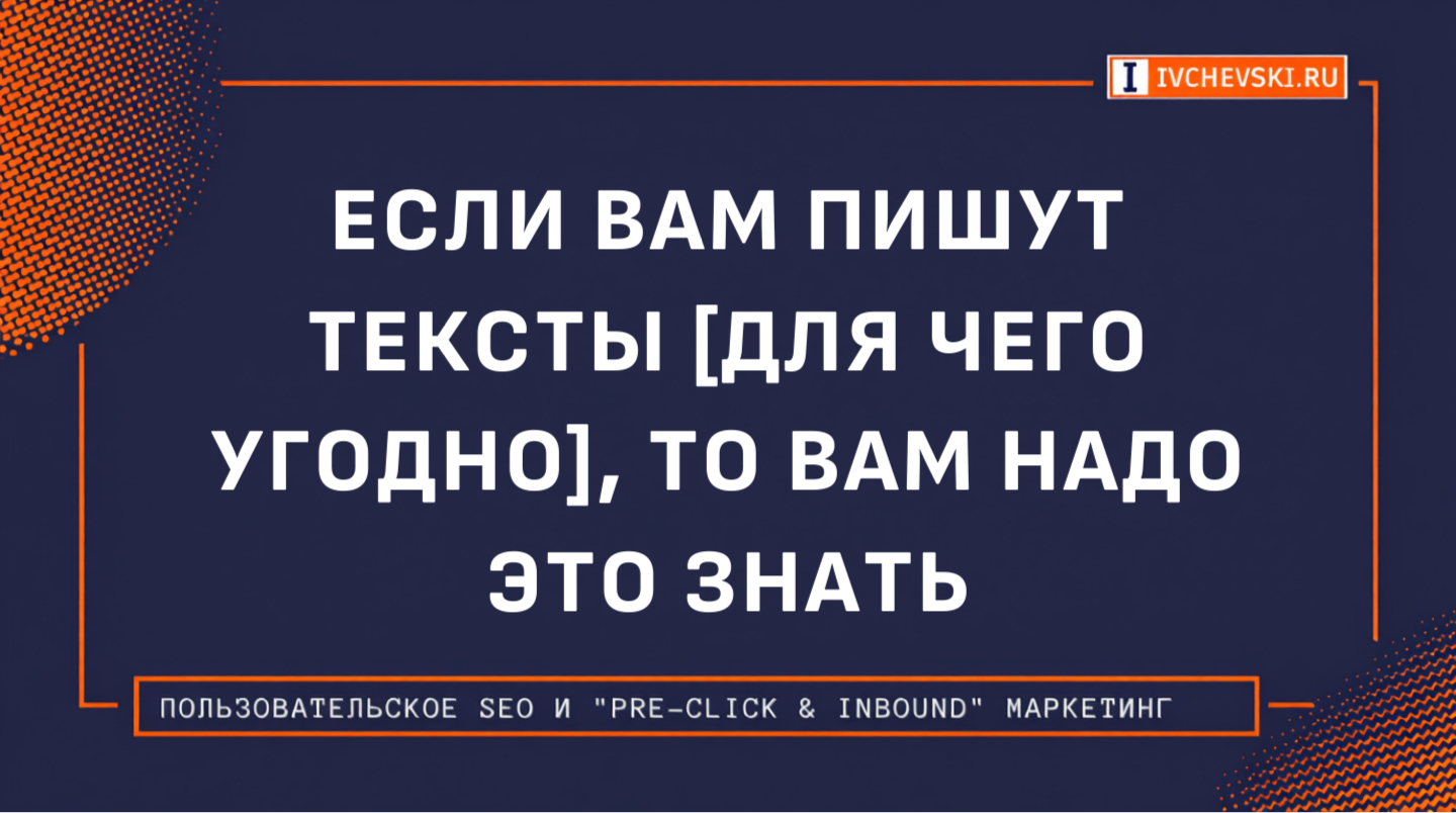 Сначала важный тезис: копирайтинг — ключевой элемент интернет-маркетинга, он всегда и во всем есть. Сайт, соцсети, рассылки, боты, реклама — что ни делайте, тексты и копирайтинг будет иметь решающую роль [тут аргументы].