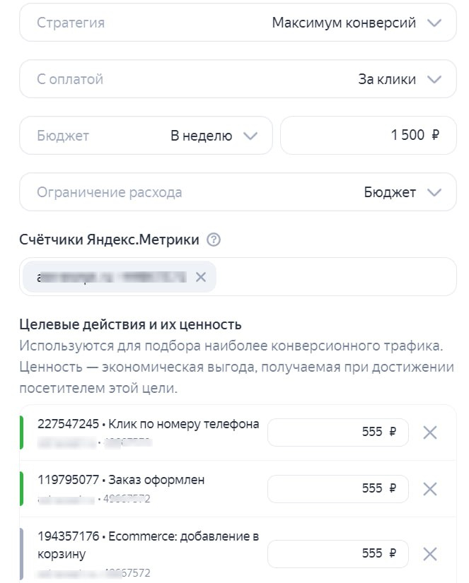 Выбираешь цель, которую хотелось бы, чтобы посетители на сайте выполнили [например, заполнить и отправить форму заказа], задаешь ее в настройках [заранее надо ее добавить в метрике] и задаешь определенную стоимость этой цели, чтобы алгоритм понял сколько вы готовы за нее платить.
