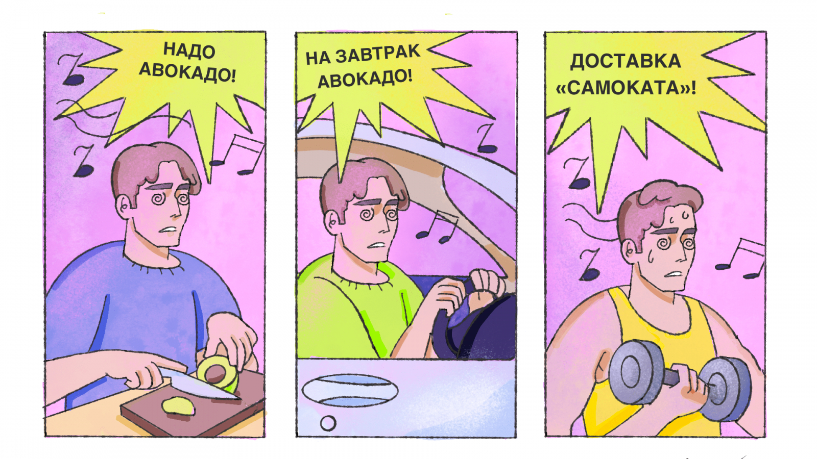 Чтобы напомнить о нём, мало просто сказать: «В „Самокате“ есть авокадо». Нужно сделать так, чтобы его снова захотелось, чтобы оно «зазвучало». И мы решили: пусть зазвучит буквально. Так пришли к мысли, что бренду нужна прилипчивая песня. Та самая, которая застрянет в голове, пока варишь утренний кофе или стоишь в пробке.