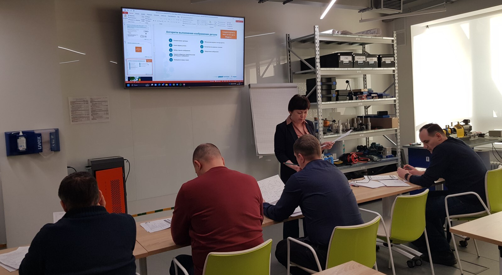 Для компании был разработан практико-ориентированный обучающий курс, в результате которого участники – специалисты, непосредственно работающие на производстве, – должны научиться эскизировать простые детали, чтобы эскизы прямо с производства можно было отправлять в ремонтную мастерскую предприятия и минимизировать простои.