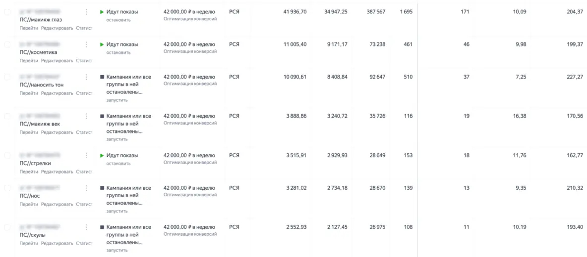 Из 7 кампаний остались только 3, потому что именно они приносят заявки и окупают трафик.