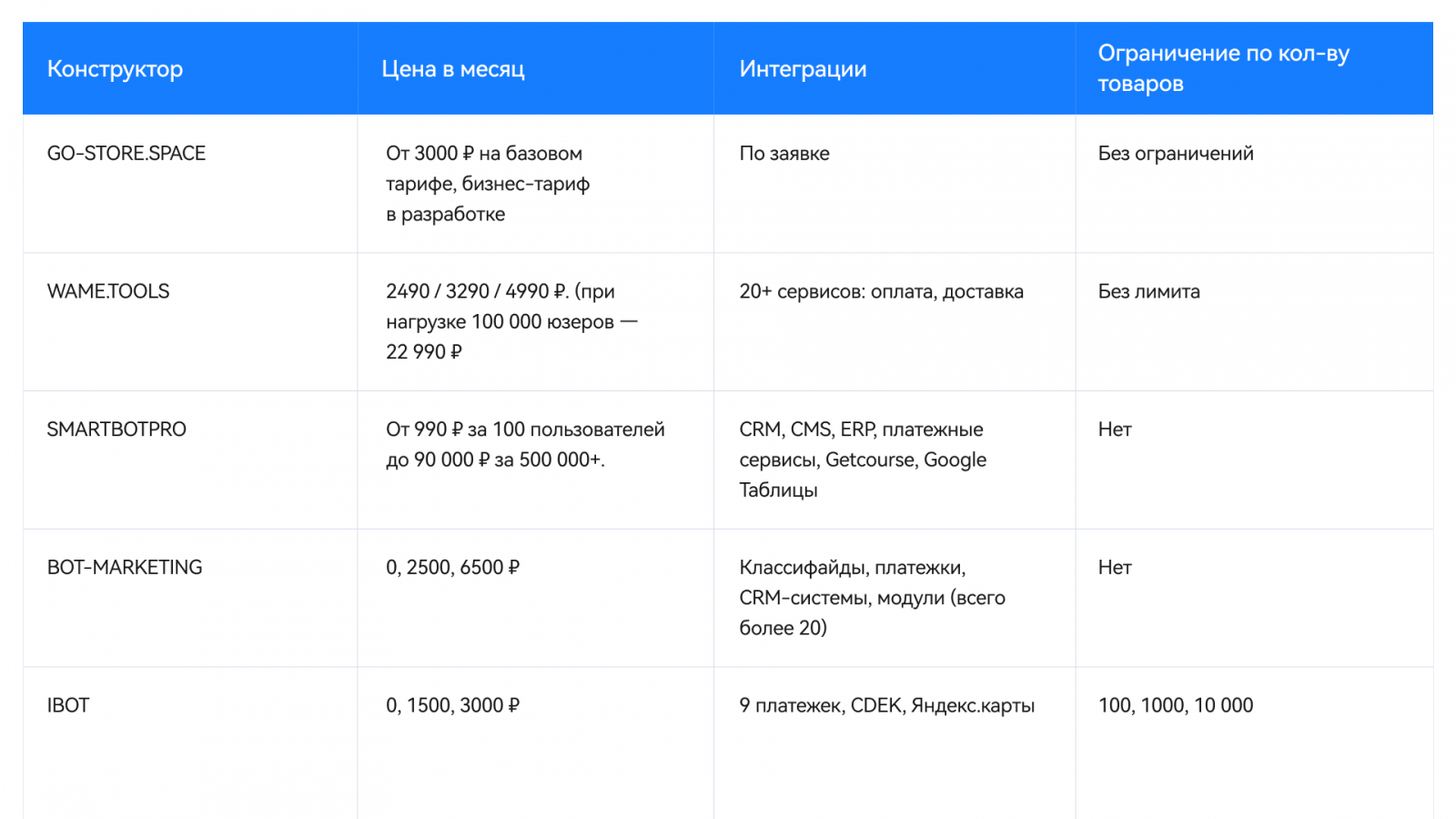 Сравнивать конструкторы Mini App Telegram — задача не из легких. И причина не только в том, что каждый сервис по-разному выставляет тарифы и ограничения. Часто в списке функций нет той, которая нужна конкретному бизнесу. Но узнать это можно только после изучения базы знаний и запроса в техподдержку.