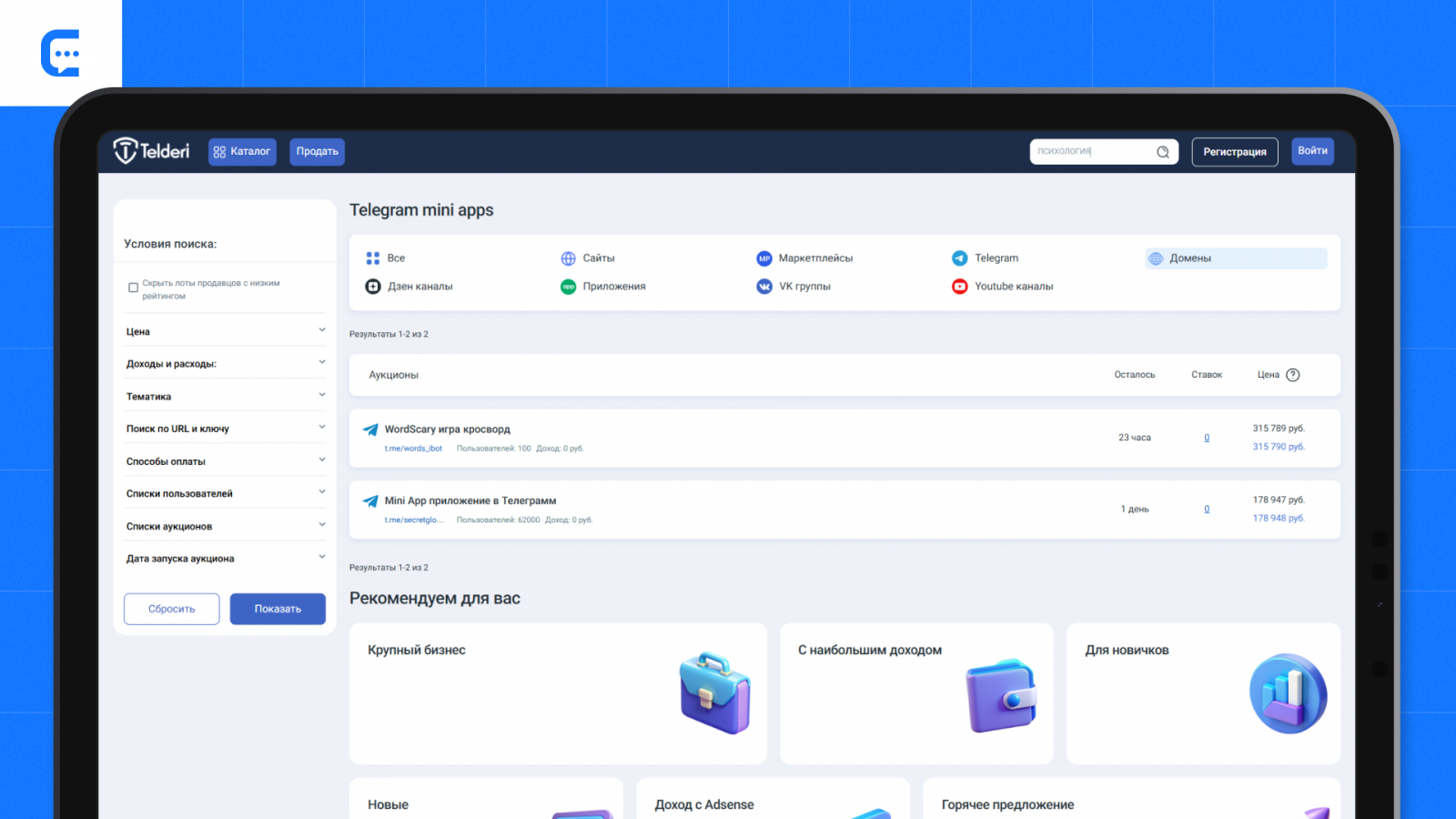 Лайфхак. Для тех кто не хочет заморачиваться с заказной разработкой или сборкой мини-аппов на конструкторе, есть вариант купить готовый Mini App на бирже Telderi или на аналогичных площадках.