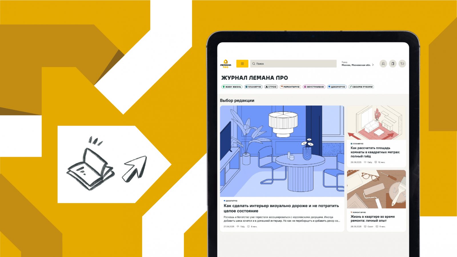 Компания «Лемана ПРО» запустила онлайн-журнал, посвященный ремонту, обустройству и декору. Ресурс предлагает полезные советы и вдохновение для создания уютного и функционального пространства. Журнал размещен на официальном сайте компании и оформлен в фирменном стиле. Пользователи могут перейти к нему по прямой ссылке или через баннеры и внутреннюю навигацию.