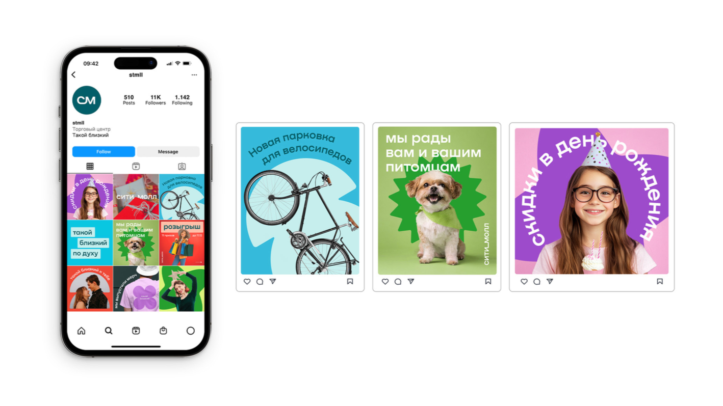 Минимализм давно прижился в трендах, но не так давно он получил новый виток развития. Минималистичные графические элементы получают неожиданные комбинации и цветовые решения в духе максимализма, оставаясь современными, но уже не такими бездушными. Так, в наших стенах родилась новая айдентика для ТРЦ «Сити Молл» в Набережных Челнах. Благодаря минималистичным приемам получился современный и «чистый» образ, а обилие цветовых решений и сочетаний отлично передает дух шоппинга, развлечений и приятных эмоций.