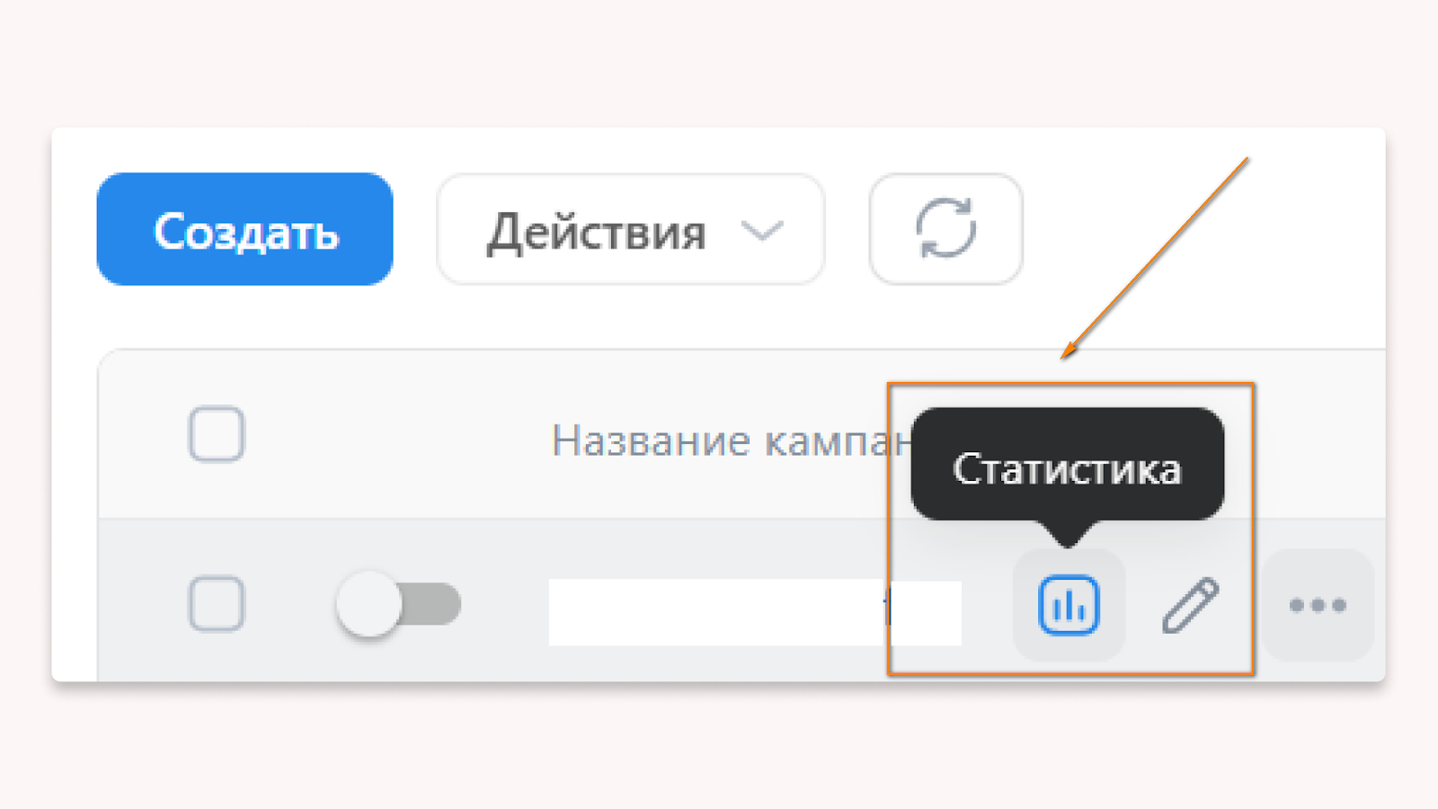 Для этого наведите на значок с диаграммой около нужной кампании.