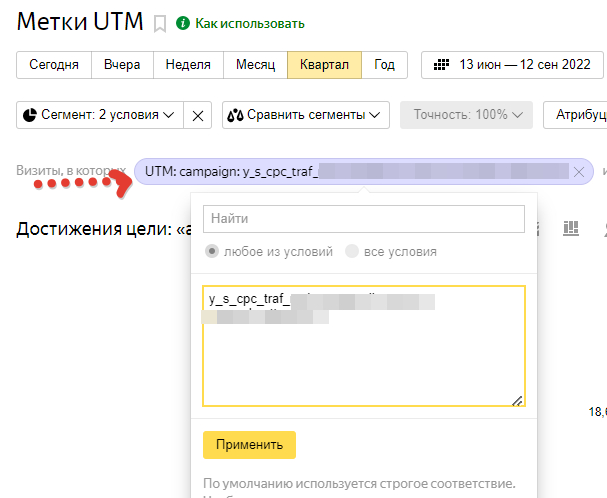 Обязательное условие при этом, чтобы utm-метки были корректно заполнены при запуске рекламы, иначе ничего не получится.