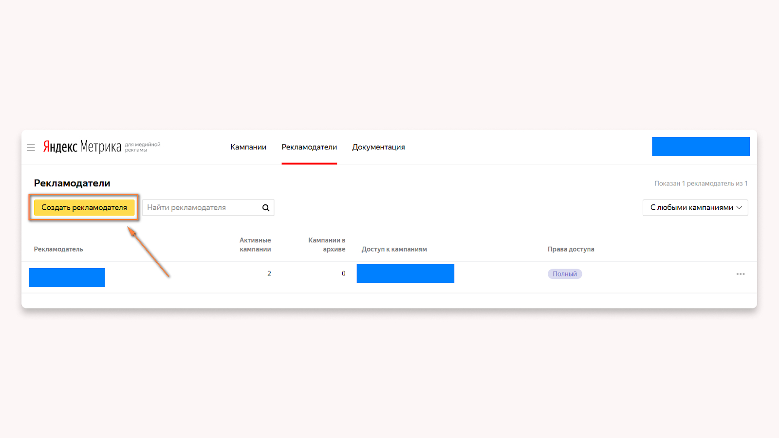 Если аккаунт уже создан, то проверьте, создан ли у вас “Рекламодатель”.
