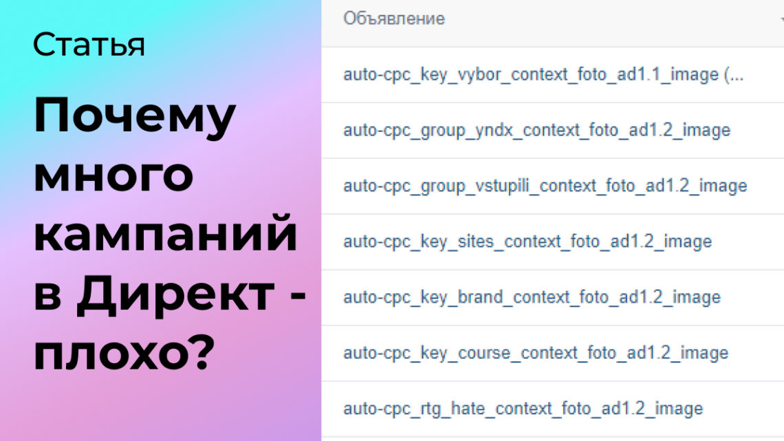 Ранее массовое разделение кампаний на отдельные гипотезы успешно работало, т.к. так делали если не все, то большинство. При этом у всех был аукцион, фразы, ставки — с этим и работали, конкурируя между собой этими параметрами.