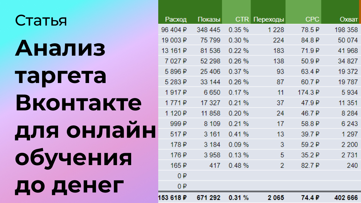 Я запускаю много таргетированной рекламы Вконтакте, строю отчётность до продаж в разрезе кампаний, объявлений, креативов, копирайта. Я могу сказать, сколько денег приносит каждое объявление или даже цвет фона на баннере. Про это и расскажу в статье.