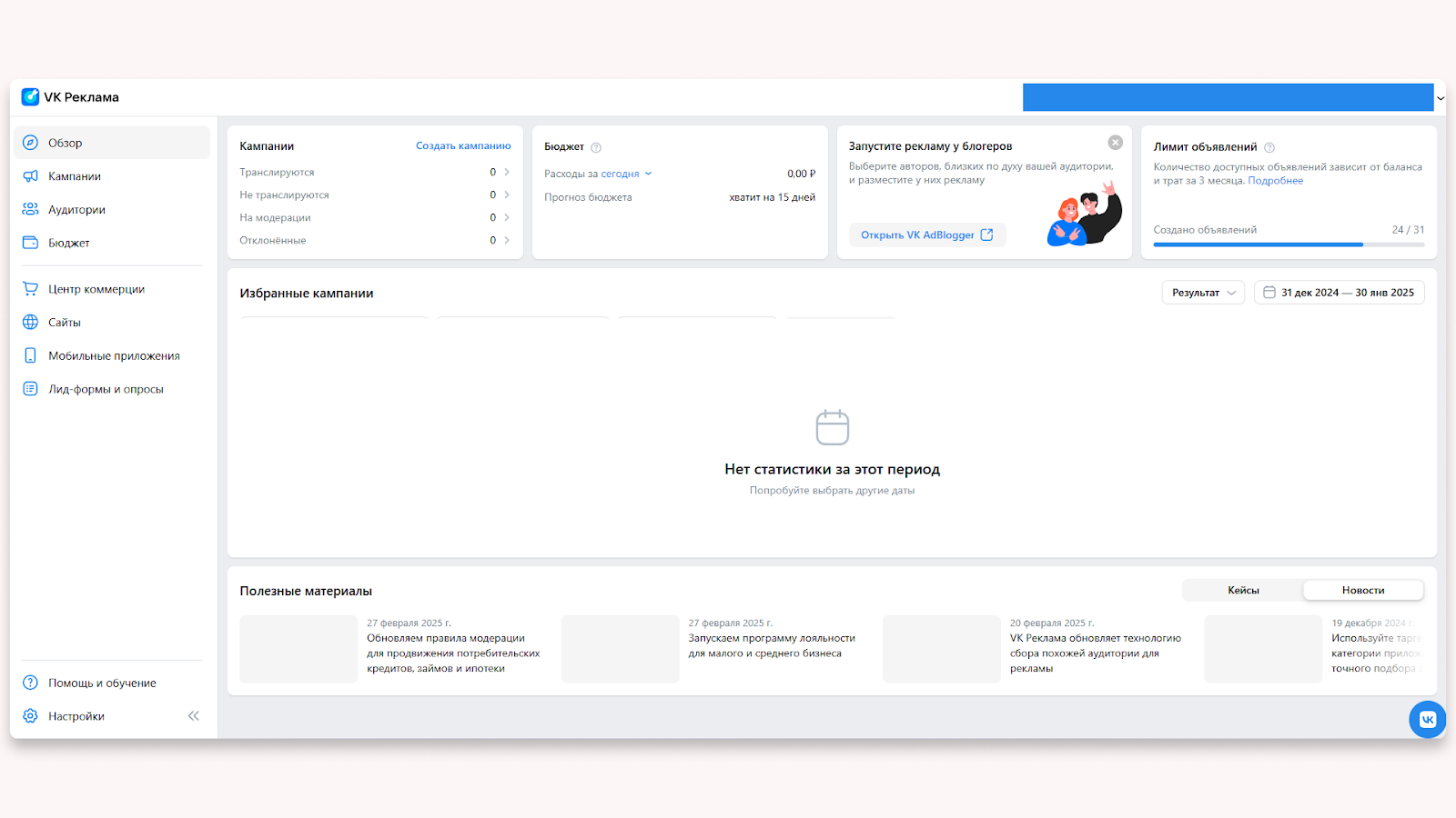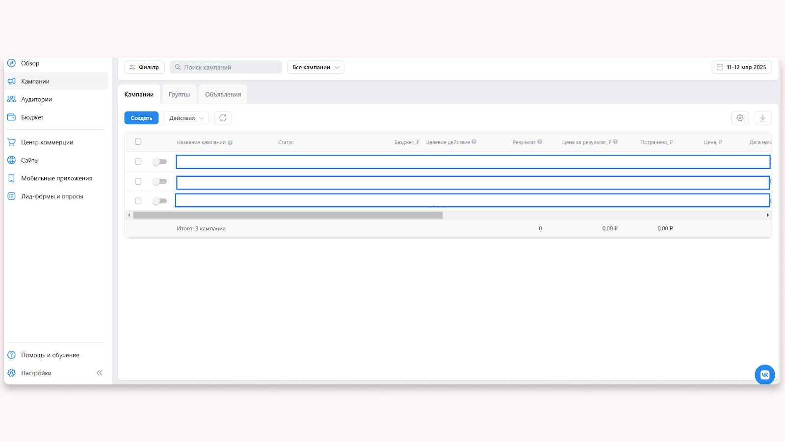 Рекламный кабинет ВКонтакте — это мощный инструмент для привлечения клиентов, несмотря на распространённые мифы о его неэффективности. Надеюсь, краткий обзор интерфейса, представленный в статье, развеял часть опасений и продемонстрировал, что освоить его проще, чем кажется.