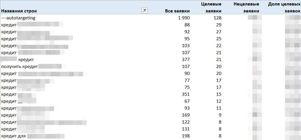 И тут нам на помощь также придёт отчётность. Чтобы ответить на данный вопрос, необходимо построить отчёт по ключевым словам до заявок и продаж. В моём кейсе с работы до «целевого» статуса в CRM.