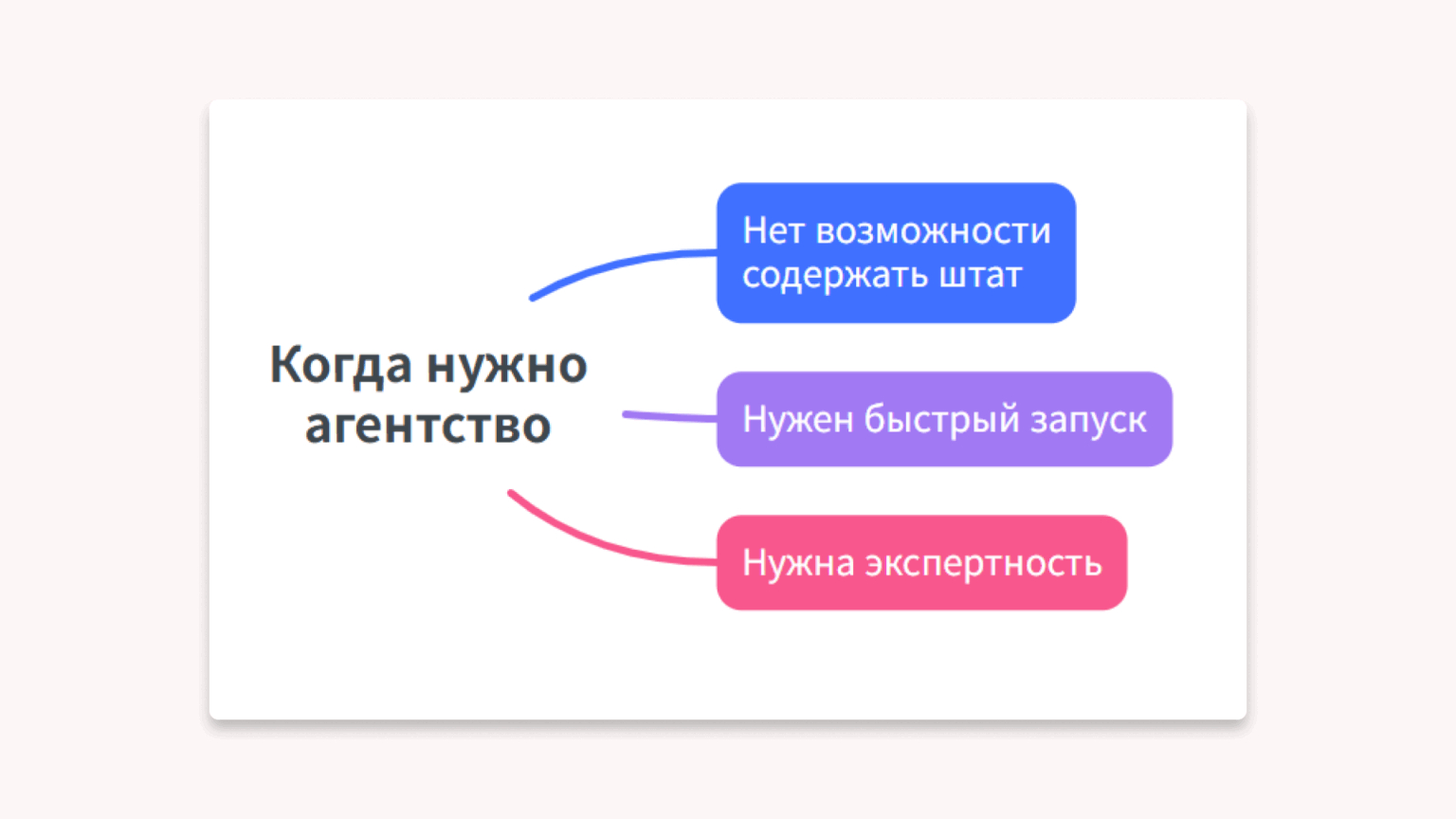Качественное агентство с хорошей репутацией берёт дорого — его услуги могут обходиться бизнесу в десятки или даже сотни тысяч рублей в месяц. Для малого бизнеса или стартапов с ограниченным бюджетом это может быть менее выгодно, чем нанять одного маркетолога в штат.