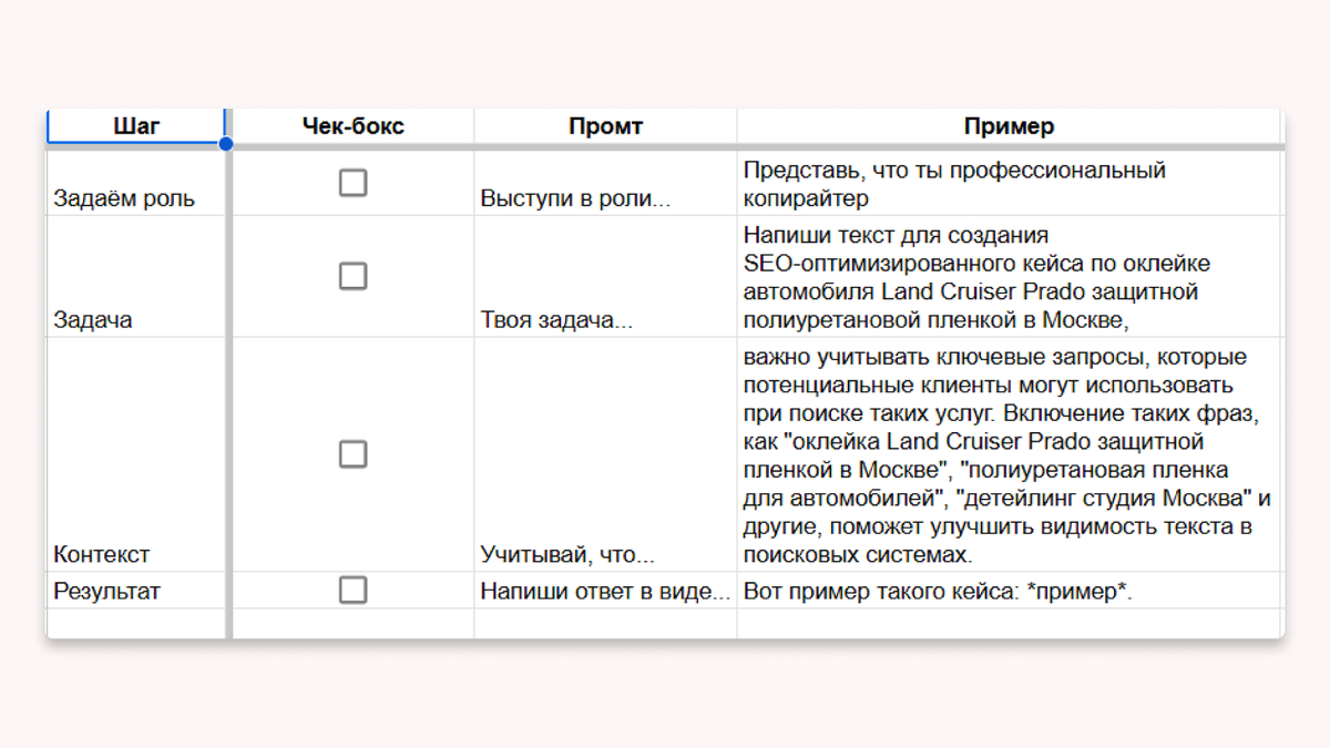 Готовая схема, которая научат вас правильно «рассказывать» искусственному интеллекту о вашей экспертизе, целевой аудитории и целях. Сможете получить не просто текст, а структурированно генерировать идеи, дорабатывать черновики, искать неочевидные аналогии и адаптировать одно ядро под разные форматы — от поста в блог до сценария для видео.