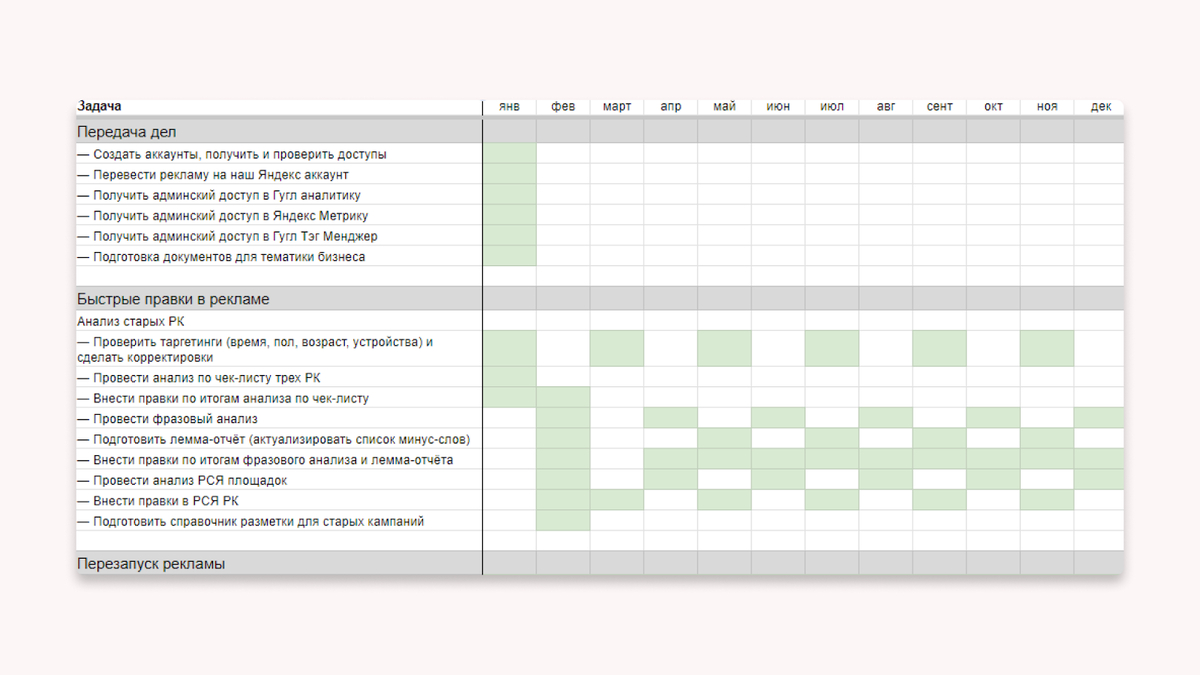 Шаблон превратит сложную задачу комплексного продвижения в последовательность проверенных действий: от анализа рынка и целевых площадок до контроля тональности упоминаний и конверсионных элементов в креативах.