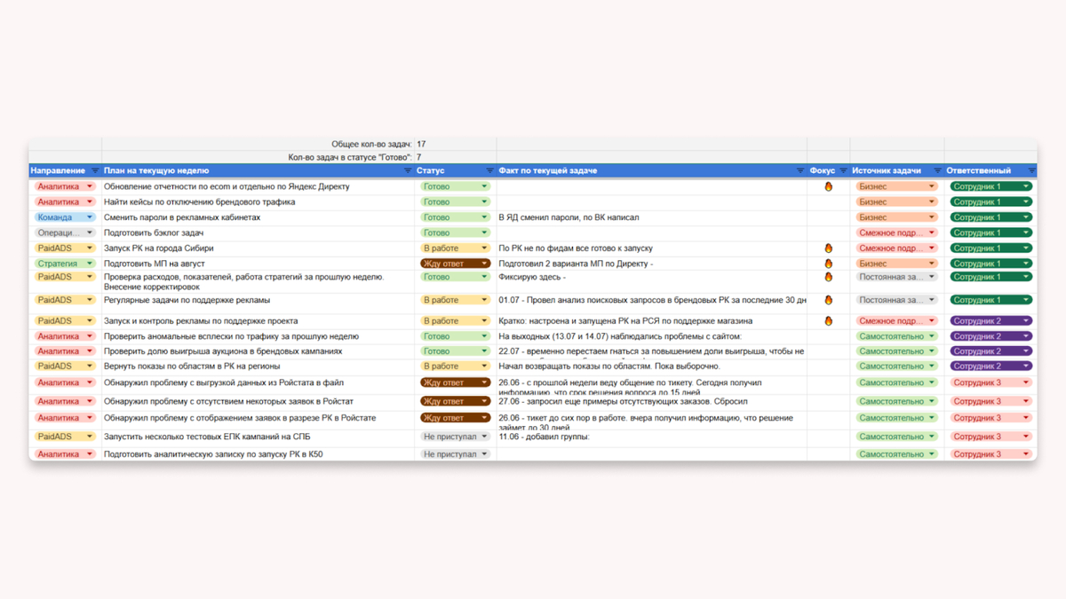 Перестаёте обманывать себя и начинаете видеть, на какие задачи уходит реальное время, где вы переоцениваете свои силы и какие активности действительно продвигают бренд вперёд.