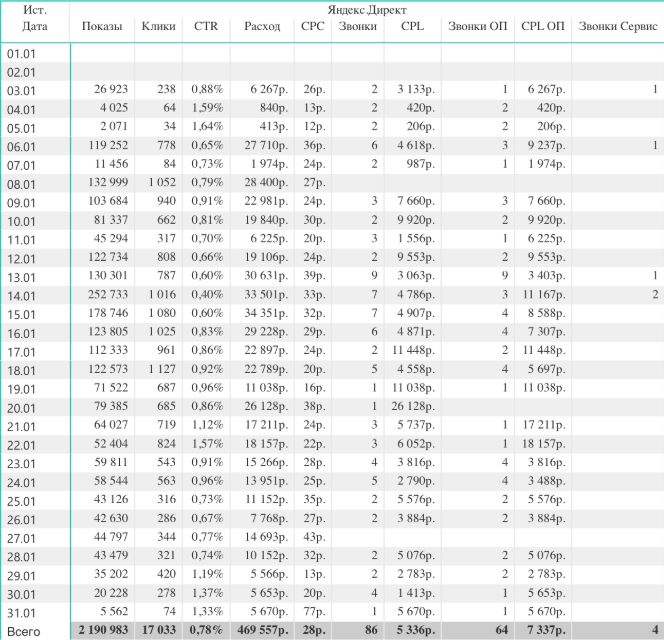 Над оптимизацией кампаний мы работали почти каждый день, по результатам января удалось привлечь еще больше целевых обращений при том же бюджете, снизив их стоимость еще на 47%: