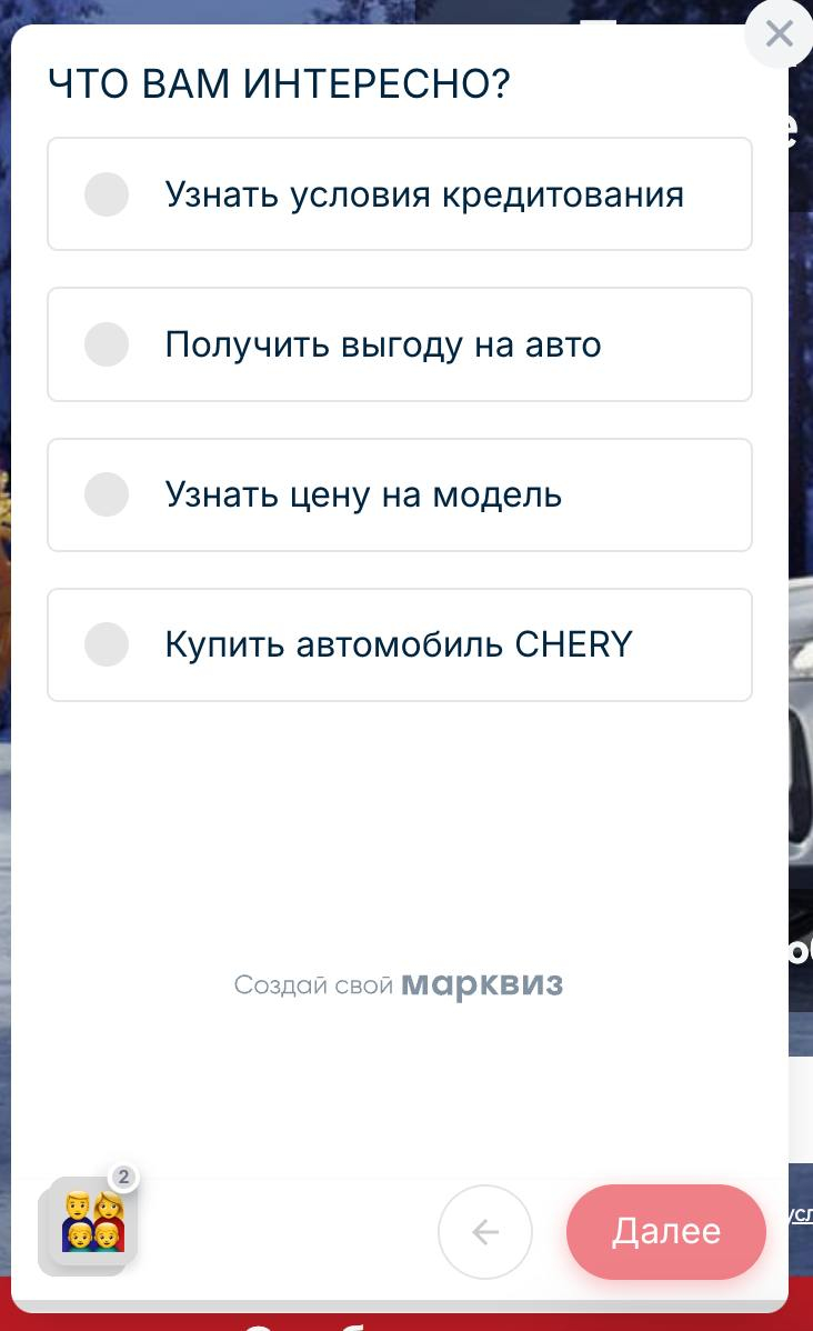 Почти во всех кампаниях мы задействуем квиз: делаем либо отдельный лендинг, либо виджет. В данном случае сразу добавили виджет с квизом на сайт: