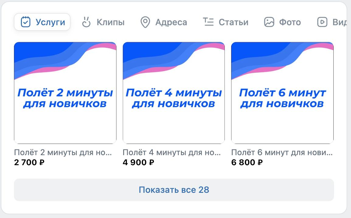 Чтобы упростить подписчикам процесс выбора и покупки, вывели карточки с услугами и ценами:
