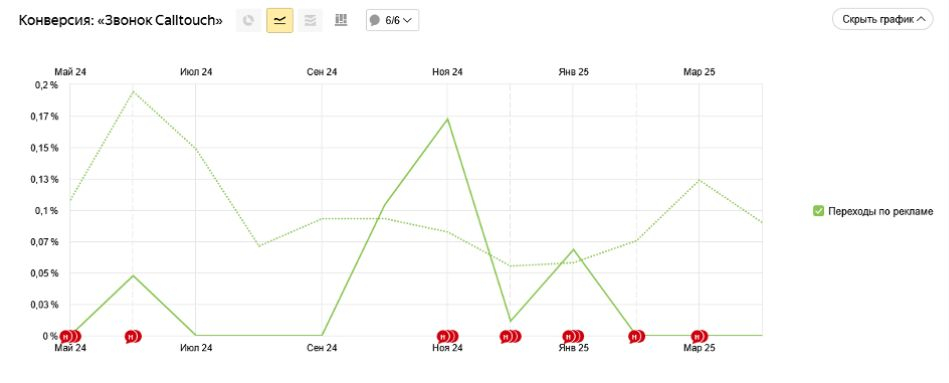 - Конверсия в звонок просела, в некоторых случаях до 0,2%