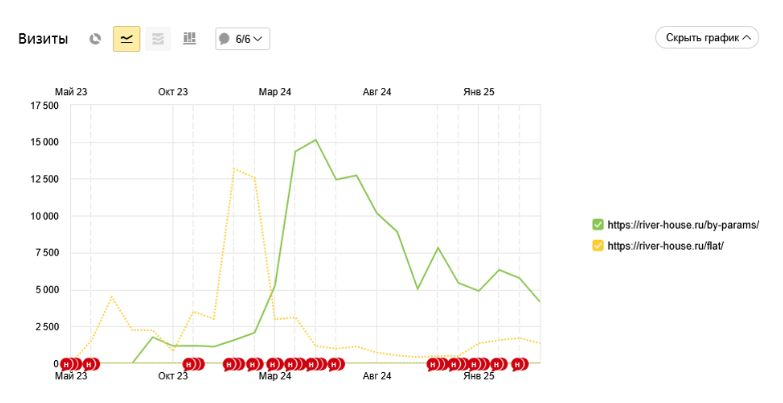 - Резко вырос трафик на разделы «категорий квартир».