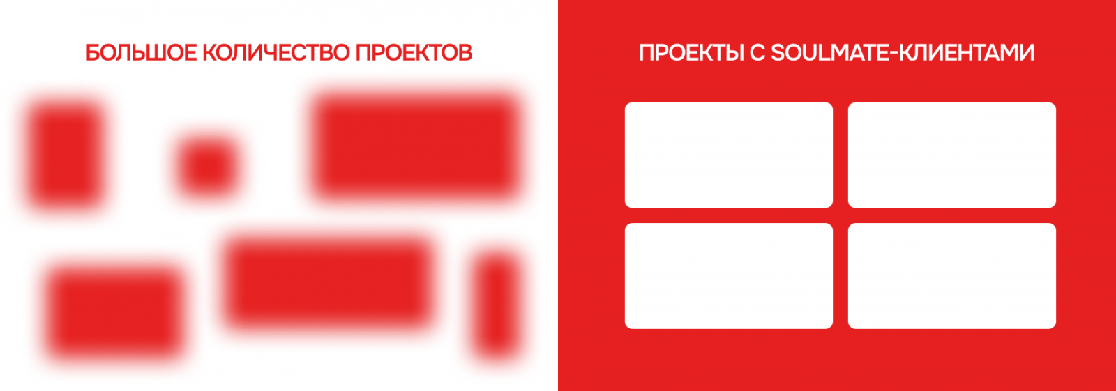 Когда агентство берёт все проекты подряд, теряется внимание, и ни один клиент не получает по-настоящему вовлечённой команды. Для нас же важно идти вглубь, вникать в продукт, становиться его амбассадором.